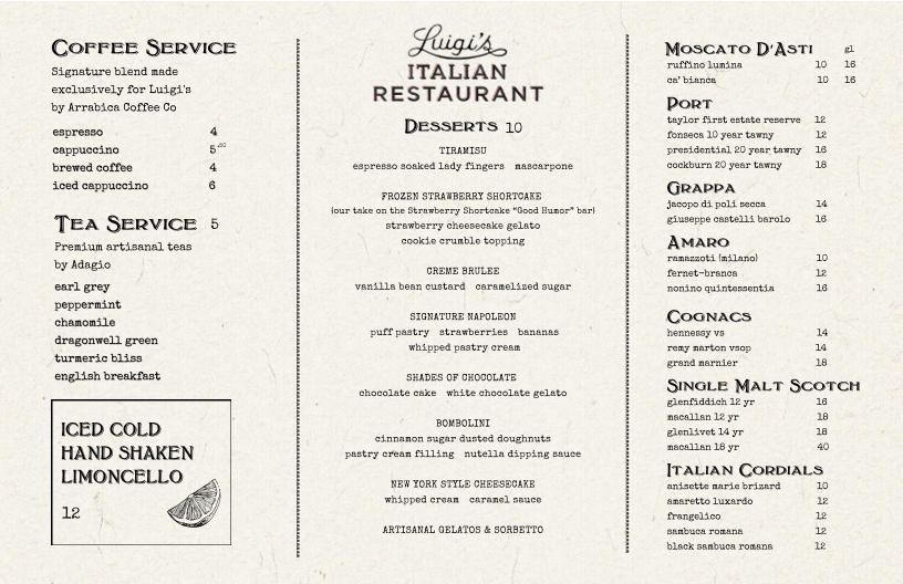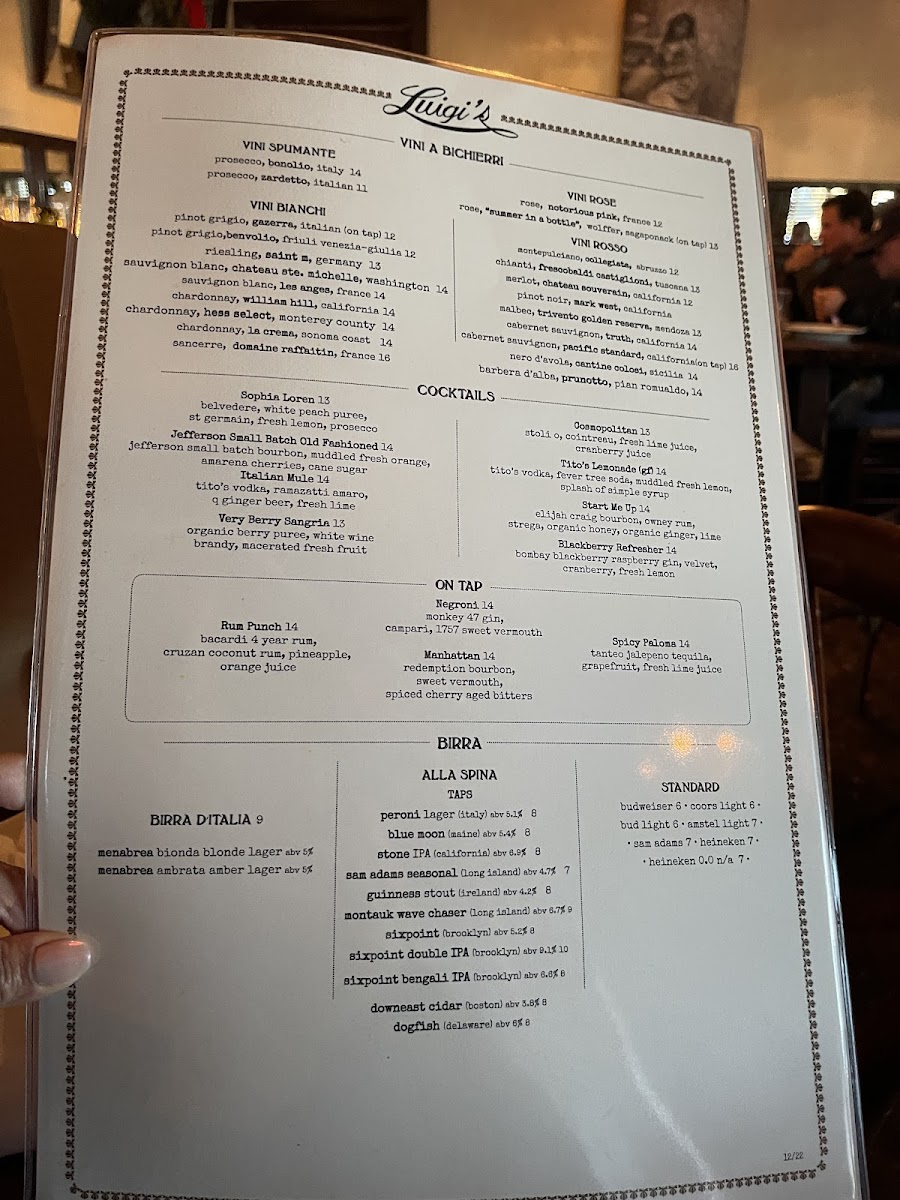 Lastly, the wine list at Luigi's is laudable—carefully curated to complement the menu and enhance your dining experience. Whether you're sharing a bottle or simply enjoying a glass alongside your meal, you're assured a well-paired selection every time.