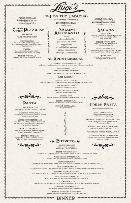 The appetizers are equally enticing, with standouts like the sumptuous baked clams and housemade fresh mozzarella adorned with marinated tomatoes and torn basil. These dishes are not just appetizers; they are introductions to the rich and comforting flavors that define Luigi's menu.