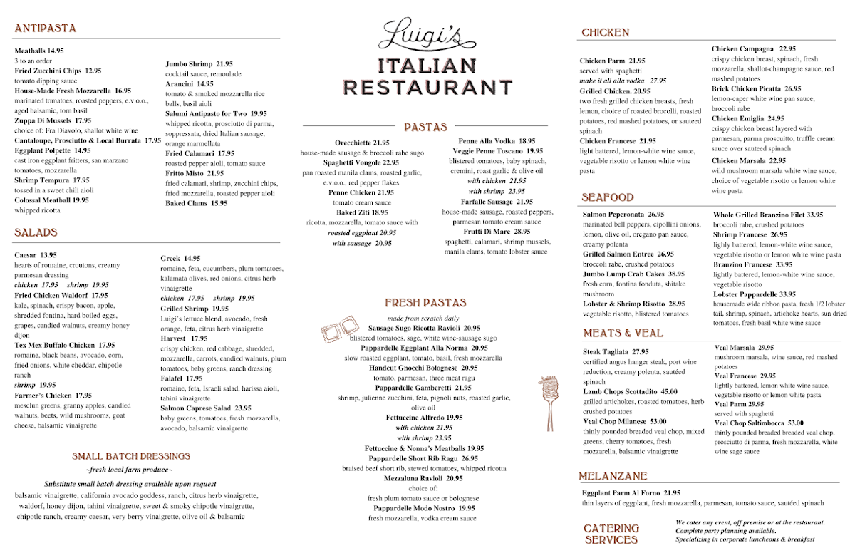 Nestled in Queens, New York, Luigi's Restaurant and Bar is a culinary gem that embodies the warmth of Italian dining. With a diverse menu featuring mouthwatering wood-fired pizzas and vibrant lunch salads, each dish reflects a commitment to fresh ingredients and authentic flavors. Diners rave about the signature lobster pasta and critically acclaimed veal Parmesan, alongside a welcoming atmosphere enriched by friendly service. The charming decor and attentive staff enhance the experience, making it perfect for family gatherings or intimate dinners. Luigi's is not just a meal; it's a memorable dining experience worth savoring time and again.